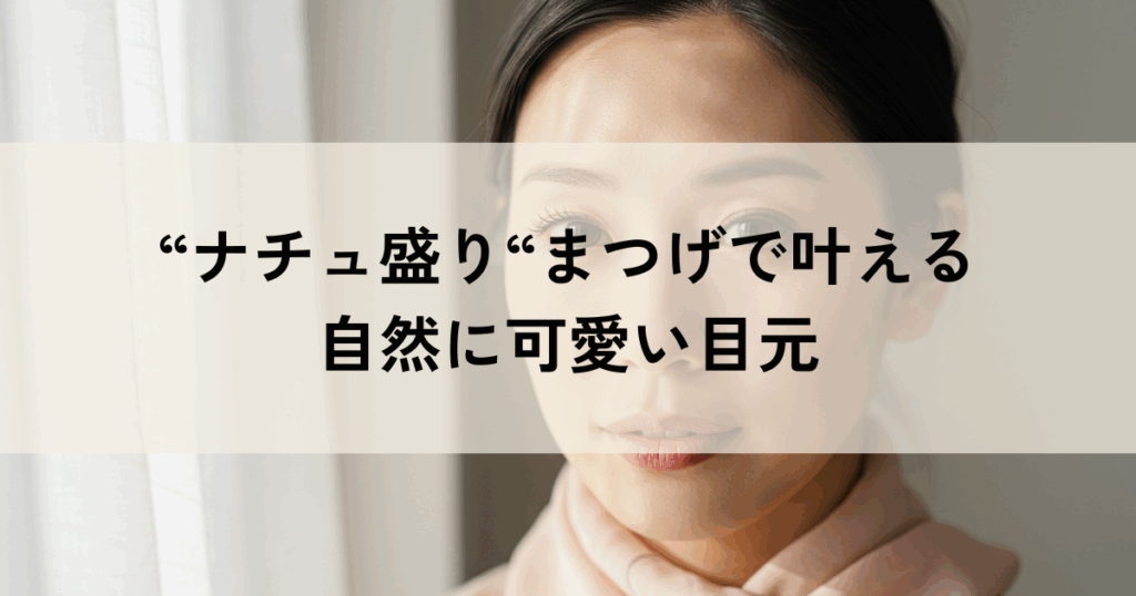 ナチュ盛りとは、ナチュラルさを保ちながら“しっかり盛れてる”ように見せるまつげデザインのこと。清潔感や可愛らしさを演出できるため、学校・職場・デート・日常どんなシーンでも取り入れやすいのが魅力です。